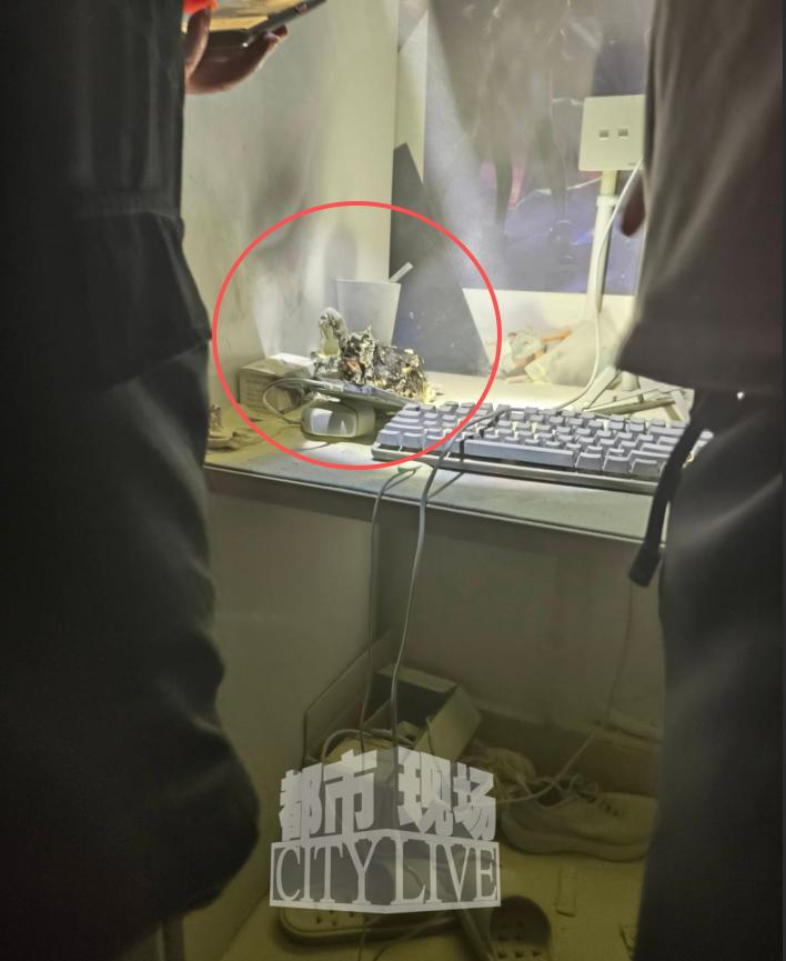 事发后,学校保安和宿管人员迅速赶到现场。保安人员询问:“你是不是电脑爆了?”宿舍同学回答:“爆了,应该是充电宝,充电宝爆炸了。”