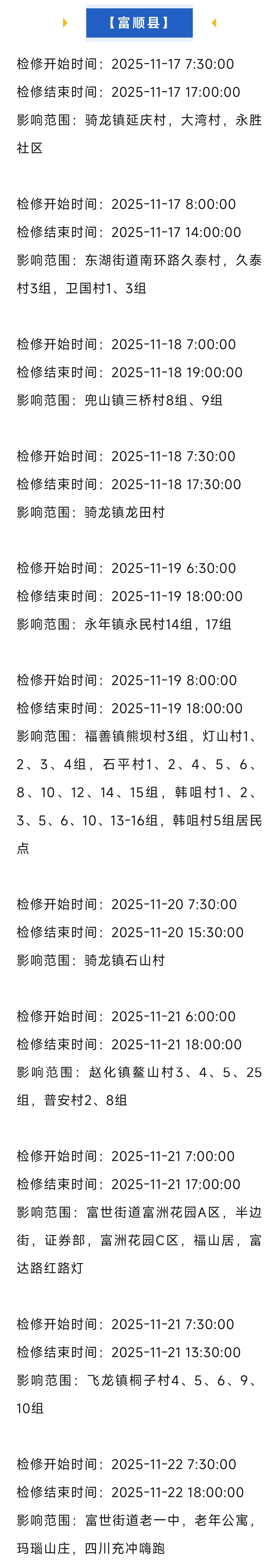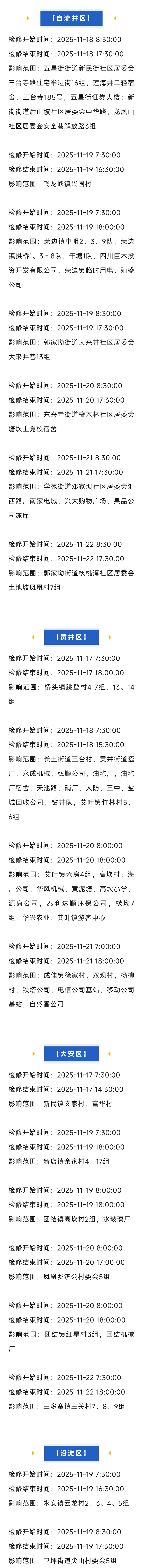 [盐都杂谈] 速看!自贡电网最新检修公告