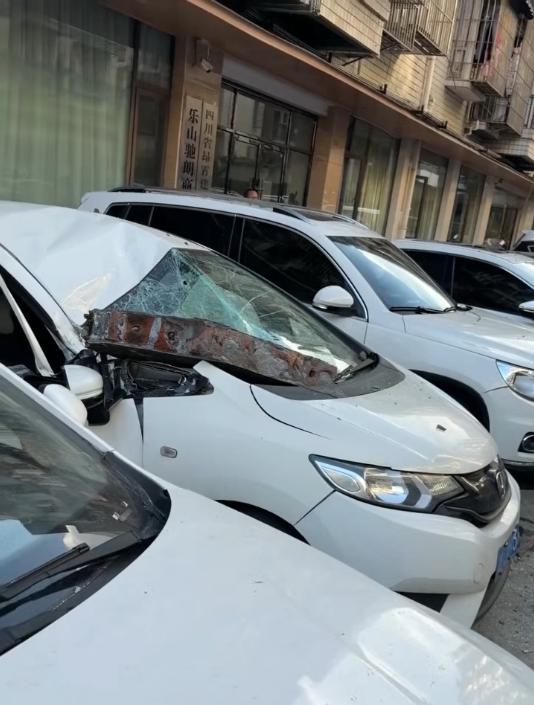 11月15日下午,四川乐山市市中区一临街老旧小区,疑因顶楼住户装修外墙体脱落,导致街边停放的5车被砸,所幸没有伤及车主和行人。 华商报大风新闻记者从当地证实,街道办、社区和派出所正在协调处理。
