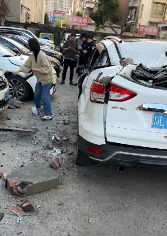 现场视频显示,有大块墙体砸中街边停放车辆,车身和地面散落着不少墙砖残块,有车主在和民警诉说车辆受损情况,现场一片狼藉。 这位车主告诉记者,脱落的是顶楼,6楼这户人家已经找到。 “他也不是装修,他是在顶楼,老旧房子上6楼再加了一层,6楼上面还有一个平台,他想把平台拿来利用一下,不晓得他当时在收拾啥子东西。相当于是外面矮墙的一部分,现场掉下来好大的一块,那些墙体现在还在那个地方。” 该车主表示,车辆被砸,6楼住户暂时没说赔偿,“现在责任划分,他说这个楼房是开发商负责那个墙。民警也来出了警,是备了案的,民警让我们打12345反映,但区住建局今天(11月15日)没有派人来。” 这位车主告诉记者,“今天也没有说好,说明天再看,事情也没解决,还不晓得最后咋解决,民警也没带他去派出所做笔录,还不清楚能不能走保险理赔。”