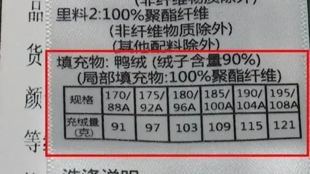 2. 看绒子含量: 数字越高,保暖性越好。常见的有70%、80%、90%,可根据需求选择。