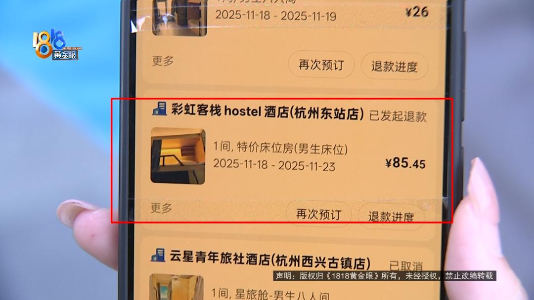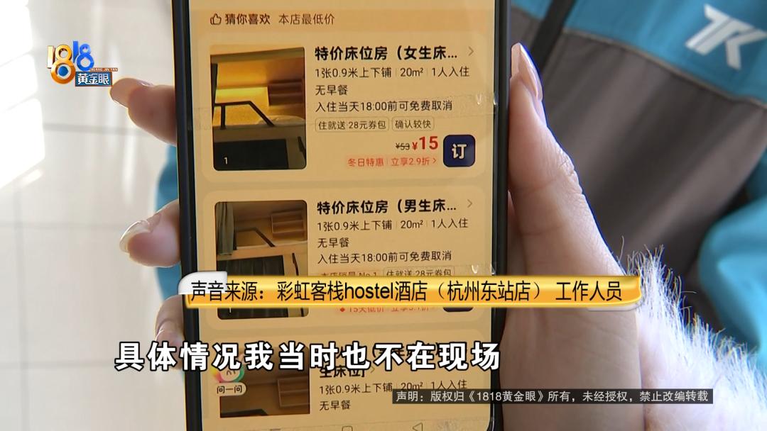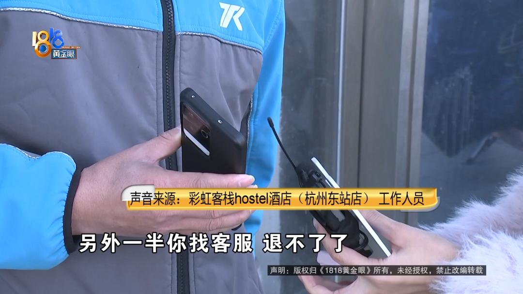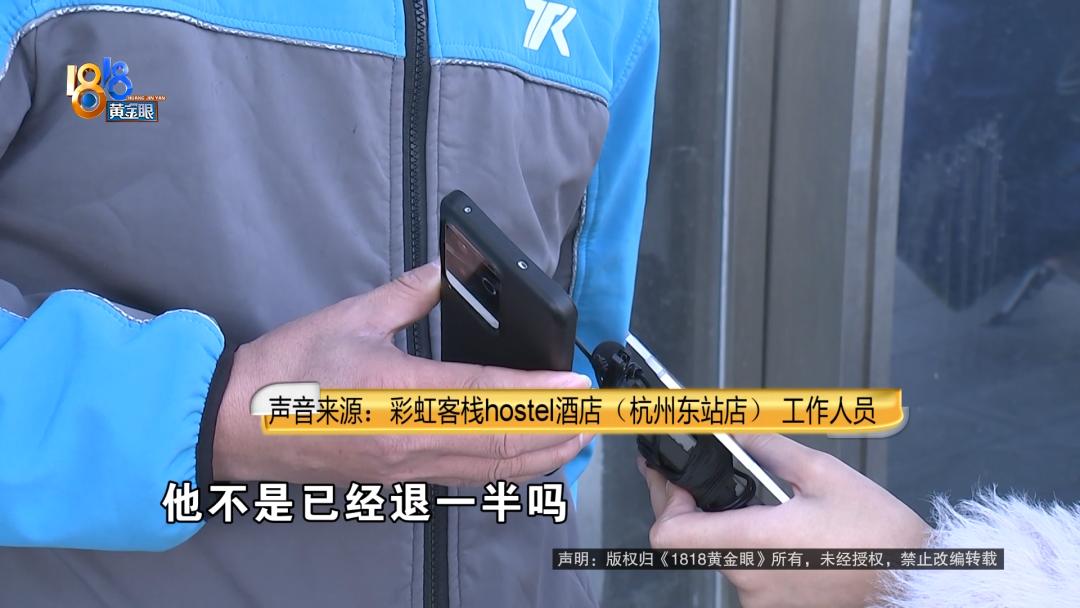 张先生反映在平台上定好的房间到现场发现一团乱麻,还不能全额退款。 张先生:我老家河南信阳的,来杭州参加临床试验,在萧山那边。那空窗期医院是不包住的,所以我们就自己找住的地方,我们没有特殊需求,一般能住得下就可以。  张先生在美团平台订了彩虹客栈hostel酒店,杭州东站店的特价床位房从11月18号到23号总共5晚 ,总价85.45元。11月18号下午两点多他到了酒店。   张先生:正常来讲都是他们安排的,他们指定你睡哪个床铺,有号的嘛。打电话给他,始终通了没人接,发信息也不回。 记者:他们前台没人吗? 张先生:他们上面没有前台,就是一个空的房间,几张床铺。 记者:几个人一间? 张先生:六七个人。  张先生说他一直等到下午三点,商家在微信中回复“空铺就可以”,但他没敢随便睡。  张先生:我说这个床单好像也没人换,他说下午有人会过去弄,我说要弄到什么时候?后来就一直没有音讯。 记者:你一直等着吗? 张先生:对,我等不及。 记者:你等到几点? 张先生:等到大概快四点多,我说我要重新找地方,不能一直在这干等。  张先生说商家后来一直联系不上,他把情况反映给了美团平台。  张先生:联系平台也是大费周折,平台人工客服是要等60分钟之后才有客服出现,打电话老是机器人回复。后来平台联系跟他沟通,他说超过了入住时间,要扣费要有罚金。 记者:你什么时候点退房的?不是六点之前可免费取消吗? 张先生:上面没有可点的,我就联系美团人工客服,刚开始说协商只退30%,要扣70%,后来沟通半天只同意退50%。   采访当天,平台显示已经退回了42.7元的房费,张先生不能接受,他的微信消息也被商家拒收了。   张先生:现在的诉求是剩余这一半要退还,它这里面环境等会可以看一下,也不符合基本的卫生要求。里面都是一堆杂物堆着,如果半夜上厕所可能会被绊倒,卫生间那边,垃圾堆成山一样,确实惨不忍睹。  客栈位置在港龙财智国际10楼,看起来像是公寓,里面有一些格子间一样的铺子,因为还有人住,记者没有过多打扰,张先生联系了商家。  彩虹客栈hostel酒店(杭州东站店) 工作人员:他不是已经退一半吗? 张先生:退了一半,另外一半呢? 彩虹客栈hostel酒店(杭州东站店) 工作人员:另外一半你找客服,退不了了。 张先生:为什么退不了了? 记者:您好……  商家挂断了电话,记者再用自己的手机打了过去。 彩虹客栈hostel酒店(杭州东站店) 工作人员:为什么只能退一半,你可以叫他问客服。 记者:你们这边不是写着六点前可以免费退吗? 彩虹客栈hostel酒店(杭州东站店) 工作人员:他如果办理入住了就退不了,没入住可以退的,具体情况我当时也不在现场。 记者:你们这个怎么算办理入住了? 彩虹客栈hostel酒店(杭州东站店) 工作人员:办理入住就是去前台登记什么的。 记者:你们这有前台吗?我没看到。 彩虹客栈hostel酒店(杭州东站店) 工作人员:有的。 记者:在哪里? 彩虹客栈hostel酒店(杭州东站店) 工作人员:拜拜。  美团客服:确实很抱歉,这边确实没有争取到全额退款。 张先生:原因是什么?理由是什么? 美团客服:您目前订单确实已经过了免费全额退款返账的,您昨天申请。 因为订单是已入住,您进去房间之后,就相当于是办理过入住了。 张先生:实际上没有入住,你们只是看形式。 美团客服:我也知道您没有住,但是酒店确实给您留房间了。  后来美团方面回复这单平台已经赔付,跟用户达成了和解,张先生反馈收到了42.7元的退款。 来源:1818黄金眼