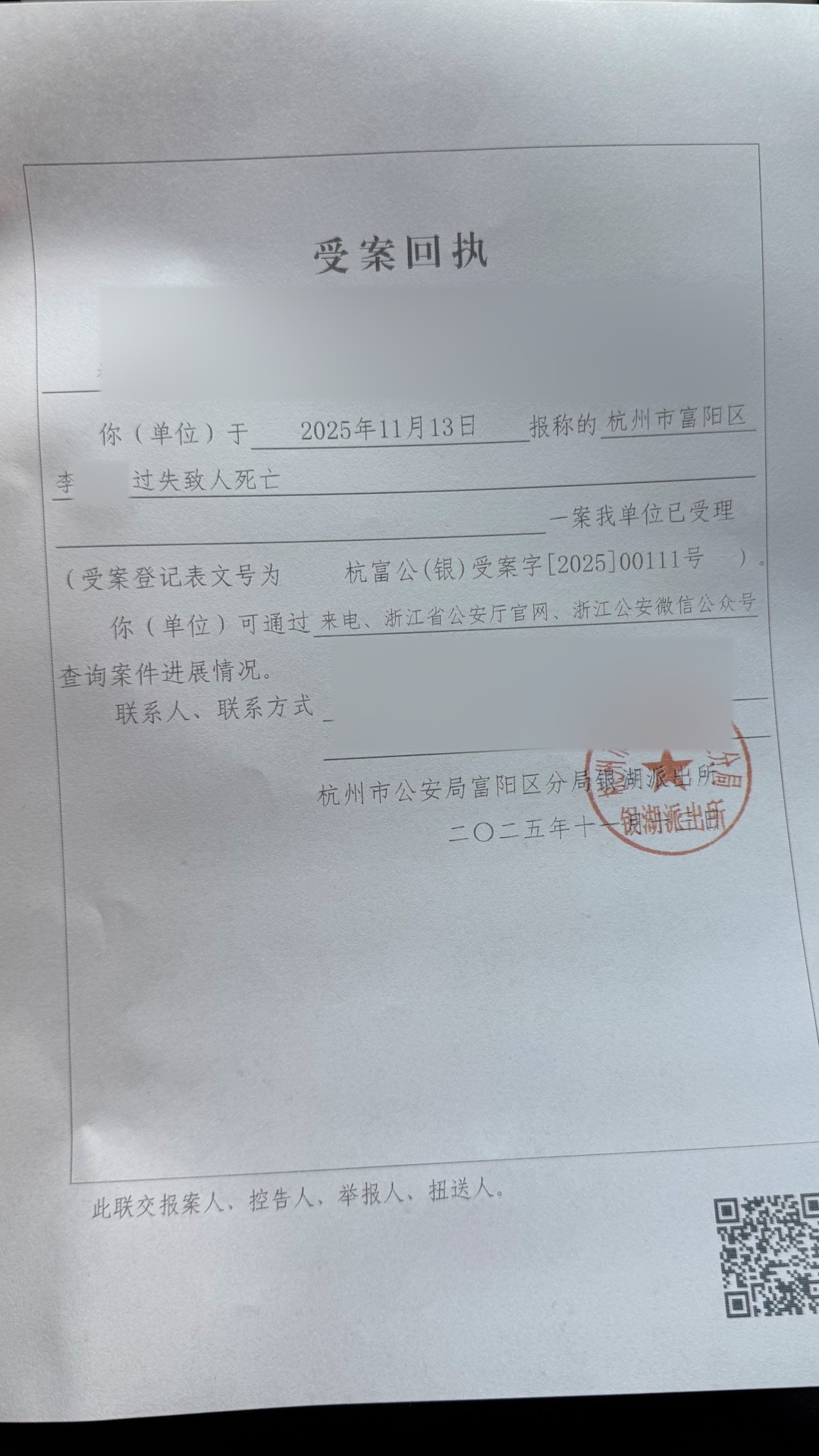 受案回执。图/受访者提供。 21日,记者富阳区妇联反映此事,工作人员称将保持关注。中午和下午,记者收到两次回电反馈,富阳区妇联的工作人员称,他们联系了银湖街道的妇联,得到回复是这件事情街道司法所安排过调解,但是没有调解成功。他们正与街道妇联、警方继续对接此事,核实具体情况。今天下午区妇联还就此事进行会议讨论。 傍晚,妇联再次回复记者,他们与公安取得了联系,目前公安正在积极处置,相关案情也在调查核实当中,具体情况就不便透露了,以公安的口径为准。工作人员说,他们也会尽快联系上宝宝的父母,如果宝爸宝妈有需要,可以提供心理援助,“奉先生如果有需要的,我们会尽力。他们一家也是我们富阳区的人,不管是什么原因这个宝宝去世都是蛮可惜的,我们是非常同情的。我也作为一个母亲,也是希望可以帮助到他们一家人。不过目前还是请我们先相信公安,公安正在积极处理中。” 潇湘晨报记者 钱嘉鑫