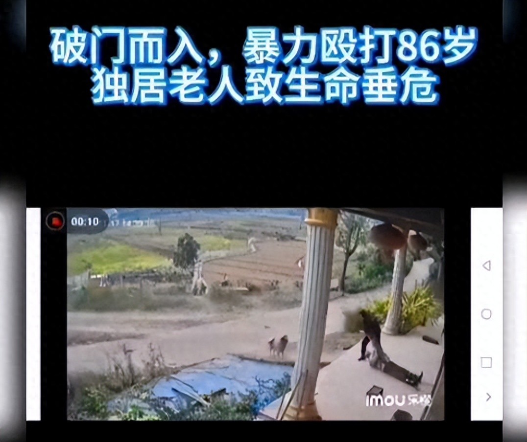 视频截图 监控视频显示,11月17日下午2时许,一名男子将一名老人从屋内拖拽出来,老人躺在地上,不停喊着“哎哟喂”,一分钟后,老人站起身与男子发生肢体冲突,但又被推倒。之后男子拿着锄头进入屋子,走出屋子后再次与老人扭打到一起。在屋前水泥地上,老人又一次被男子推倒,男子坐在老人身上并扇其耳光。该网友在视频画面标注文字:“破门而入,暴力殴打86岁独居老人致生命垂危。” 网友自称视频中被打的是他的爷爷,目前正在医院。极目新闻记者尝试联系该网友,未获回复,其发布的视频也已删除。 极目新闻记者注意到,另有网友也发布了上述监控视频,视频标注事发地位于衡阳县高峰村社山组。有不少网友转发视频并评论“触目惊心”。