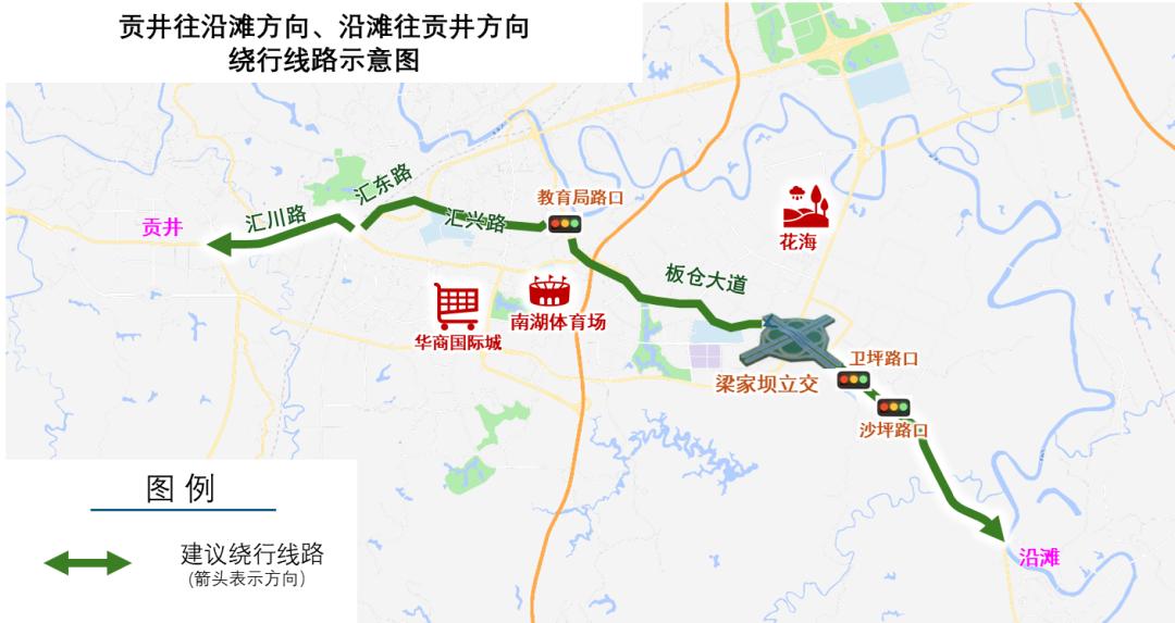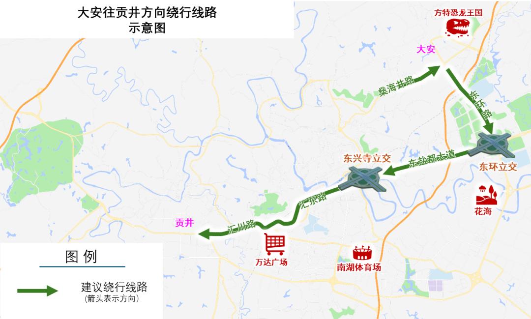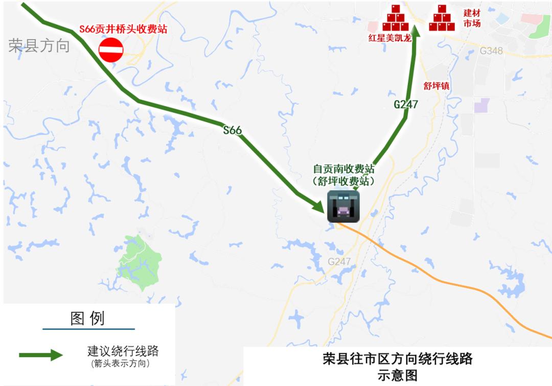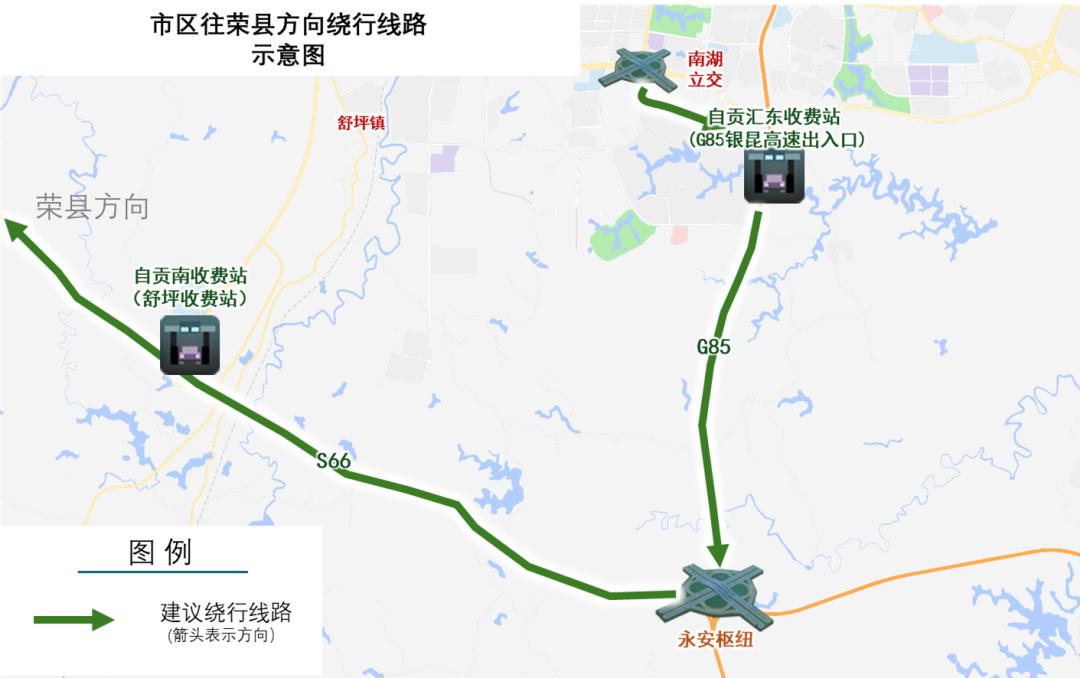 11月30日,2025中国公路自行车职业联赛(自贡站)将燃动盐都!为保障赛事安全顺畅,多路段将实施临时交通管制。这份超详细绕行指南,速速收藏转发,避免出行受阻~ 赛事情况概述 比赛日期:2025年11月30日(星期日) 比赛时间:09时30分 参赛规模:专业组约150人,业余组约1200人 起终点:自贡南湖体育文化中心 跨市通行绕行线路 原计划从S66贡井桥头收费站入城车辆,建议经S66至永安枢纽后转入G85后,驶入自贡汇东收费站(G85银昆高速出入口)进入自贡市区。 原计划从S66贡井桥头收费站出城车辆,建议经自贡汇东收费站(G85银昆高速出入口)驶离自贡市区。 市内通行绕行线路 贡井往大安方向原计划途经北环路、东环路、G348车辆,建议经汇川路、汇东路,途经三八路、仁和立交、燊海井路驶入大安。 大安往贡井方向原计划途经北环路、燊海井路车辆,建议经燊海井路,东环路,东盐都大道,汇东路,汇川路驶入贡井。  沿滩往贡井方向原计划途经G348车辆,建议经板仓大道,途经教育局路口(毛家坝路与汇兴路交叉口)、汇兴路、汇东路、汇川路驶入贡井。 贡井往沿滩方向原计划途经G348车辆,建议经汇川路、汇东路、汇兴路、板仓大道,经梁家坝立交驶入沿滩。  荣县往市区方向原计划途经G348车辆,建议经S66高速前往自贡南收费站(舒坪收费站)进入贡舒路、汇川路驶入市区。  市区往荣县方向原计划途经G348车辆,建议依次经丹桂大街、迎宾大道驶入G85自贡汇东收费站至G85前往荣县。  市区前往高铁站通行建议 赛事管制期间,经板仓大道、富川路、江姐大道、江姐立交前往高铁站路线正常通行。建议原计划途经G348、东环线自市区前往高铁站方向车辆,按上述路线绕行。  编辑:余凤 编审:张宏彦
