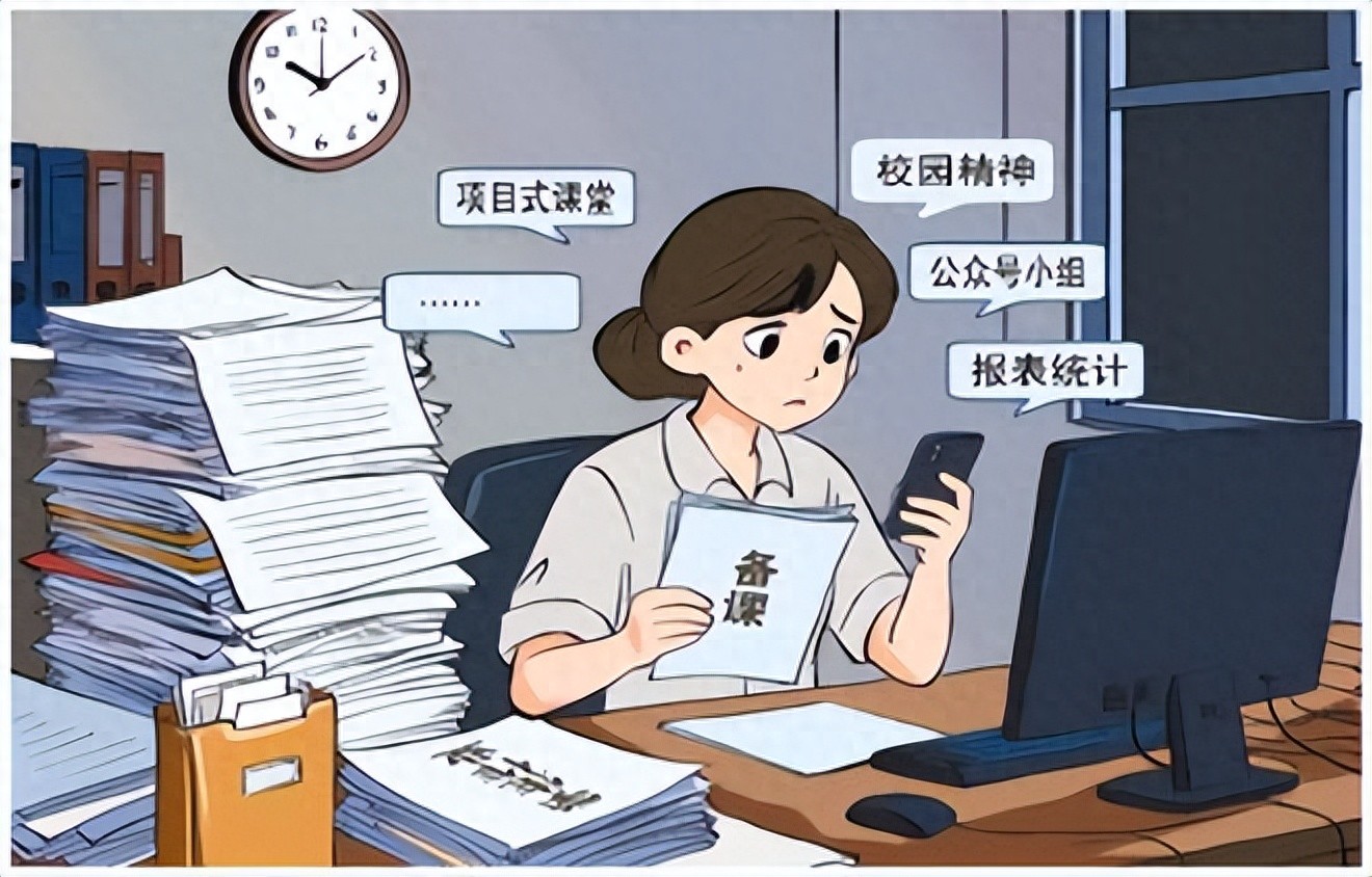 这些跨界任务涵盖多个领域:当地举行马拉松赛事,早上6点教师就要到岗担任志愿者;寒暑假要参与教研、值班,还要去街道参与清洁工作;放学后要去路口执勤维护交通。此外,安全教育、禁毒、反诈等活动进校园,也要老师全程参与。“写方案、拍素材、发公众号,周而复始,根本停不下来。”一名受访教师如是说。