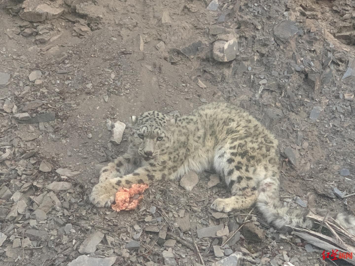 接到报警后,尼玛松保带着民警和哈秀乡政府工作人员一同赶到现场。他们发现,雪豹一直躺在山坡上,行动困难。因为担心惊吓到雪豹并被攻击,救助人员只能小心翼翼地靠近,“结果雪豹显得很温驯,像知道大家是去救它。”