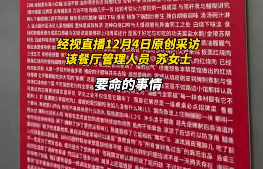 苏女士说:“对于餐饮来说,产品是最要紧、要命的东西,顾客提到的(评价不好的)菜,其中一道是我们特别王牌的一道菜”。
