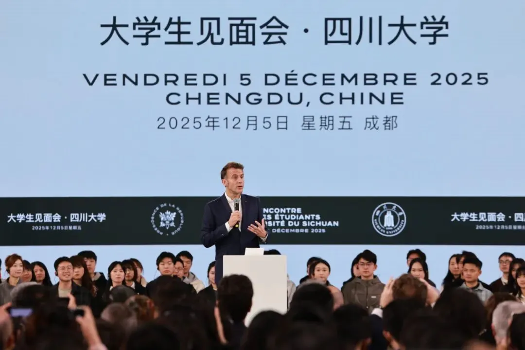 12月5日下午,法国总统马克龙访问四川大学。
