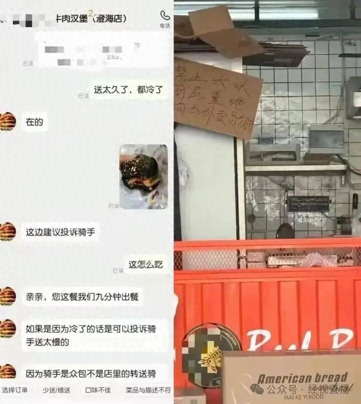 12月5日,广东汕头一汉堡店在门口张贴歧视外卖员的告示,引发争议。网传告示上写有“禁止犬吠,厨房重地,狗与外卖员勿进”文字,大量外卖员不满。