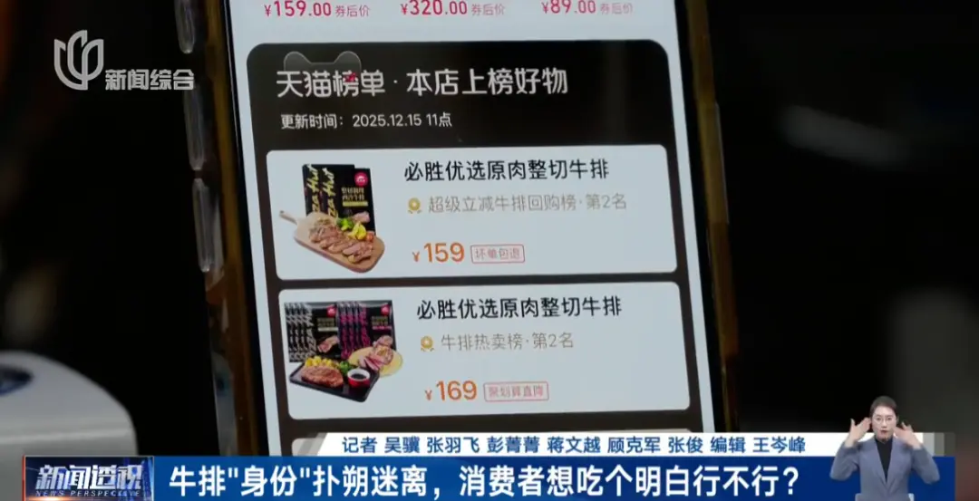 12月19日,市场监管部门对涉事两家门店展开检查。执法人员确认,菜单上的5款牛排均为调理牛排,配料表中除牛肉外,还有大豆蛋白等原料及十多种食品添加剂。