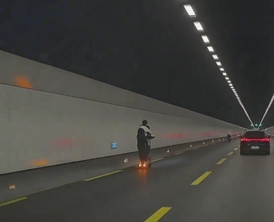 12月22日,有网友发布视频称,12月21日晚上9时45分许,在广东省深圳市鸡公山隧道内,有一名身穿校服的学生和另外两名孩子,骑着一辆电动滑板车在隧道内快速行驶,机动车非常多,非常危险。  视频截图 12月23日上午,极目新闻记者给这位视频发布者私信留言,对方目前没有回复。 极目新闻记者注意到,这位网友在评论区称,刚开始以为滑板车上是两个小孩,后来驾车从旁边经过才发现是3名小孩,后面一个年龄最大,前面是一个小男孩,中间还有一个小女孩。 另有从此处经过的司机在评论区称,当时他也看见了这3名玩着滑板车的小孩在鸡公山隧道内行驶。  视频截图 资料显示,深圳鸡公山隧道连接着福田银湖与龙岗坂田,贯穿坂银通道,全长4592米,是城市主干道,车流量较大。 12月23日上午,极目新闻记者以市民身份拨打深圳交警报警电话,福田区交通大队梅林交警中队的一位工作人员回复称,12月22日已经找到三个孩子,当着家长面对三个孩子进行了批评教育。该负责人称,在日常管理中也会通过现场查处以及监控等措施进行管理。 (来源:极目新闻)