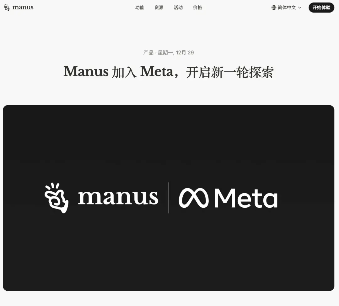产品推出仅9个月就被大公司收购,创始人进入Meta核心管理层。Manus在声明中写道:“这不只是一条新闻,更是对我们在通用AI Agent领域工作的认可。”