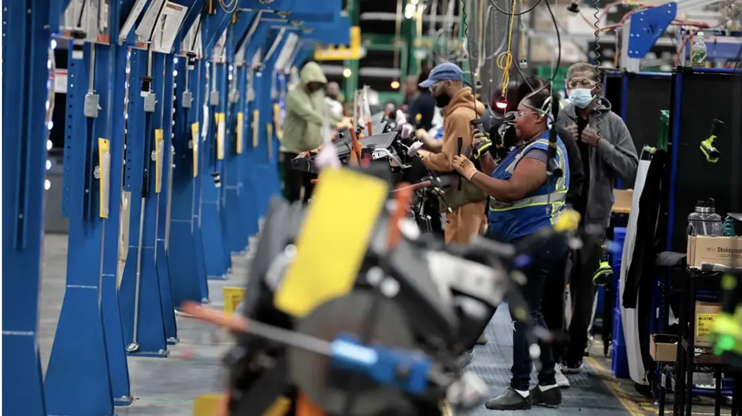 ◆2022年5月5日,工人们在美国密歇根州底特律的一家制造工厂工作。