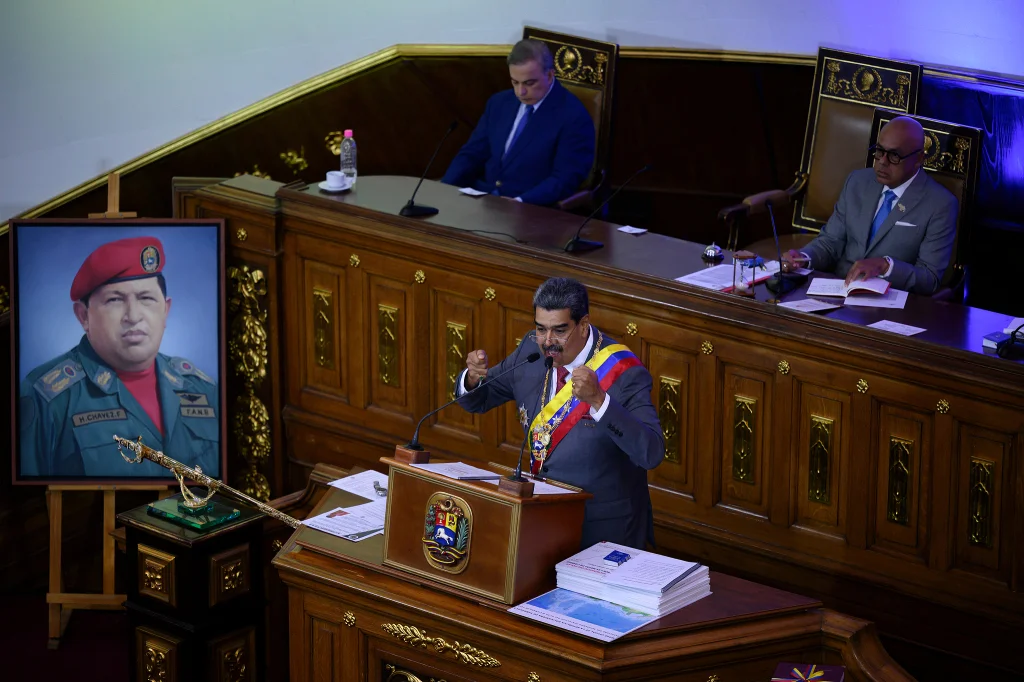当地时间2024年1月15日,委内瑞拉总统尼古拉斯·马杜罗在国民议会发表年度演讲。视觉中国 图