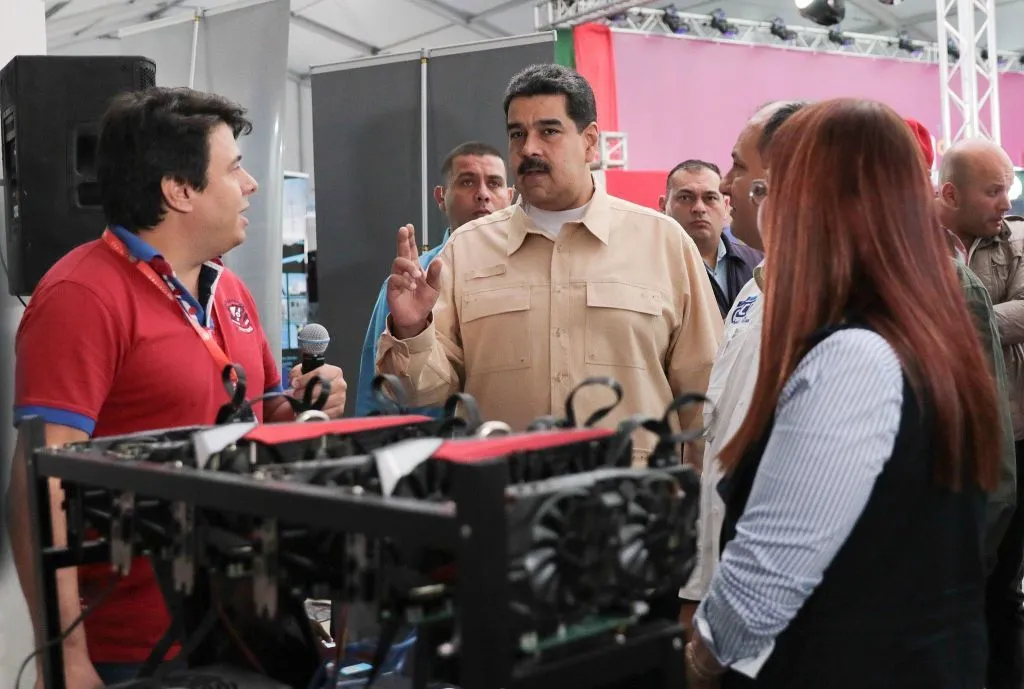 当地时间2017年12月4日,委内瑞拉拟自创加密货币,总统马杜罗参观虚拟货币挖掘机。视觉中国 图