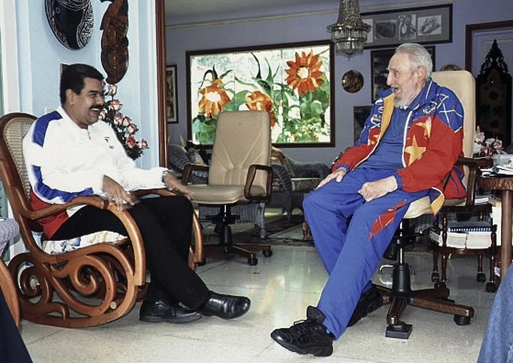 当地时间2014年8月19日,古巴哈瓦那,古巴前领导人菲德尔·卡斯特罗(右)迎来88岁寿辰,委内瑞拉总统马杜罗特意拜访祝贺。视觉中国 图