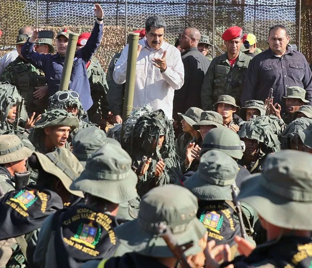 当地时间2019年2月10日,委内瑞拉查纳拉夫,委内瑞拉总统马杜罗正式启动该国有史以来最大规模军事演习。视觉中国 图