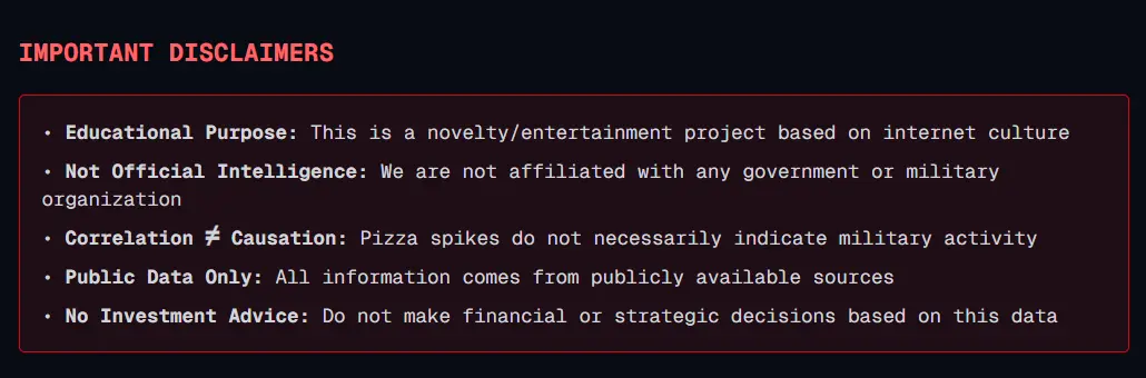 值得一提的是,pizzint.watch网站中有这样一段免责声明:
