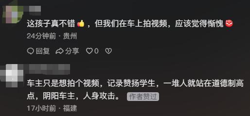 “回家路上看到一堆石头,看到前方有学生,我便停下车准备让他们先过去,他看到这堆石头,主动跑过去把石头丢到一边,小朋友的世界真的很有爱呀”,近日,湖南湘西一女子分享自己回家路上遇到的暖心一幕,视频发出后,有网友为小朋友点赞的同时,也有不少网友指责了该女子,为何不下车帮小朋友一起捡。1月8日,视频发布者龚女士告诉潇湘晨报记者,“第一天的时候看到评论被气到睡不着,第二天看的时候,我老公也说,怎么不下车帮忙捡一下,我就想可能我是真的没有做好。”目前,龚女士已经买好零食,等着下次回家时,遇到那位小朋友再送给他。  龚女士是湘西泸溪人,当天下午4点半左右,她驾车回家。“当时看到对面有有砖头,我看到有学生过来了,就把车子停那里,想让他们先过去,别的学生就过去了,那个小朋友就跑回去给我捡砖头,我把车子摇下来,我说不用捡,我能过去,他还在那里捡。”龚女士想着,这么有爱的一幕,要记录下来,便拍了视频,视频拍摄20多秒,之后,龚女士再次跟小朋友说不用捡,可以过去,“后来他就走到我车边,我跟小朋友说了谢谢,他比较害羞,没说什么。”原本龚女士还想多和小朋友交流几句,因后面来车,龚女士便直接将车开走了。  当时车上没有零食,龚女士计划着下次回家的时候看到小男孩再分点零食给他,“我家和他属于一个大村,村里没什么年轻人,车子也少,我一周回家两三次,我下班经过那里刚好赶上他们放学,时间久了就认识了,我家开了理发店,他们都在我家理发。” 将视频发出来之前,龚女士也有过担心,“但又觉得应该看的人也不会很多,我觉得是很平常有爱的一幕,另外想着新年遇到这个小朋友,我觉得就挺幸运的,没想到会引起这么大的反响。”  龚女士将视频发出后,不少网友指责其为何不下车帮忙,对于网友的评论,龚女士表示自己都有看到,“一开始我还是解释了一下,但是大家一直在说,说的人多了,就会觉得自己是不是真的做错了。”事后,龚女士也曾反思自己当时的行为,“可能做的还是不太好。我当时想的是,车上确实没什么零食,但是有一个娃娃,本来准备给他送一个娃娃,念头在脑袋里一闪而过,就把车子开走了,过后感谢跟当场感谢意义不一样,人都有失误的时候。也会想当时要是把后面我跟他道谢的视频连着一起拍的话,会不会稍微好一点,但是人生没有那么多如果。”龚女士说,“还有网友说我夹子音,我当时是开了1个小时,不知道为什么突然就发出了这个声音。”    对于网友的建议,龚女士也有接受,“零食已经买好了,会尽快去把这些零食给小朋友。”龚女士表示,该男孩应该是三年级的学生,“我只要回家一般就会遇到,就这几天会回去给小朋友道谢。” 潇湘晨报记者张沁
