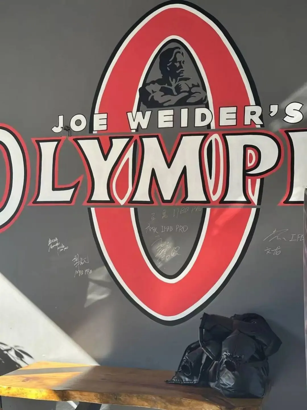 “肌肉工厂”店内墙上,留有多名职业健美运动员签名 摄影/王仲昀