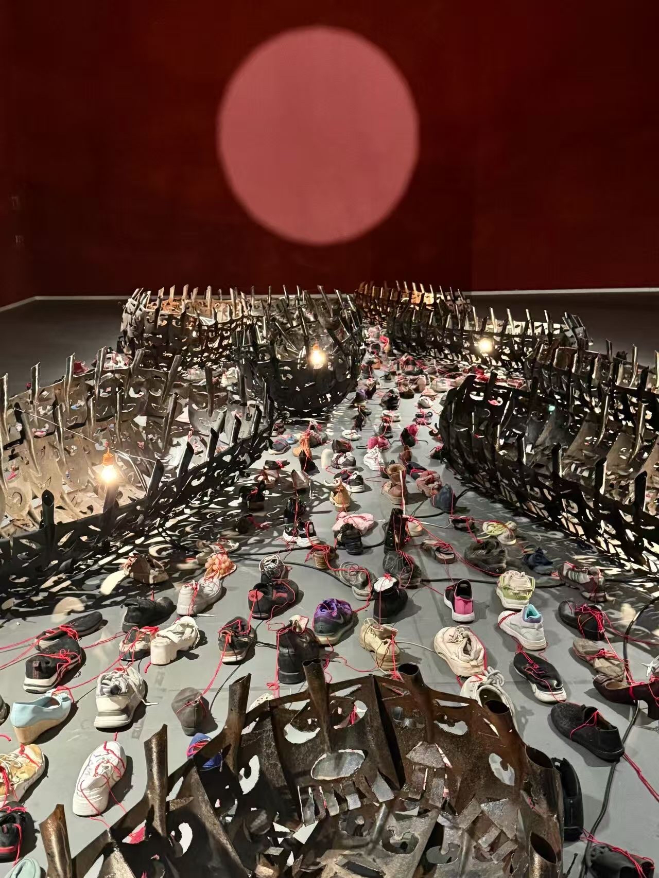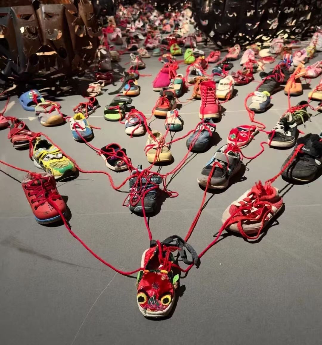 正在天津美术馆展出的“无极・任戎——大型个展”,突然遭遇了争议:装置作品《远方》因被部分网友投诉,导致馆方临时决定撤去该作品大部分组成元素——用红线连接的一双双旧鞋。  开幕当天的展览现场 天津美术馆官方微信上是这样介绍这场跨年艺术展的:“……联合德国波恩当代艺术馆、天津美术学院共创,集中呈现艺术家大型装置、雕塑及绘画作品,是年度国际化艺术标杆展,为津门引入全球艺术视野。”  “大约五六天前,我就收到消息说可能要把《远方》里的鞋子撤掉了。”艺术家任戎告诉红星新闻记者。  艺术家任戎 任戎出生于江苏南京,1986年毕业于南京艺术学院,后赴德留学。2013年,他在德国波恩创建“德国波恩当代艺术馆”,积极推动中德当代艺术和文化交流。 据任戎介绍:这件大型装置使用的所有鞋子,都是来自从2018年至今,广大民众捐赠的富有个人生活记忆的旧鞋,并且很多民众写了关于自己和鞋子的感想与故事。他说:“我把它们铺在了地面上,用象征血脉相连的红线串联着,代表人类命运相融共生的共同体,和众多铁船组成了人类文明生生不息、向前航行的装置《远方》。”他表示:鞋子寓意着千里之行始于足下,人们走过的路。红线则代表了人与人之间的血脉连接。  装置作品《远方》 据了解,这件装置作品此前已在国内多家美术馆展出过。  装置作品《远方》 对于网友的争议,任戎表示:欢迎大家亲自去天津美术馆现场参观体验,阅读他在每一组艺术装置作品前摆放的创作理念,这样能够更好地理解作品所表达的意义。 红星新闻记者 乔雪阳 编辑 曾琦