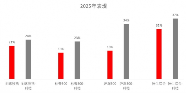 星展银行认为科技正在引领各行业的发展。所以星展理财非常重视科技行业在组合中的配置。2025年全球科技股的整体表现也符合我们的预期(图一)。