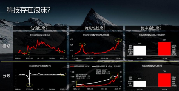展望2026年,全球格局演进的步伐未有停歇之势,机遇与挑战交织并存的时代特征愈发明显。在此背景下,投资者需以更具前瞻性的视野与战略性思维,对资产配置组合进行动态优化与调整。然而,我们仍然无可避免地面对广大投资者的共同疑问:科技是否存在泡沫?我们深知科技高估值所带来的疑虑,因此我们在2026年将率先作出分析。