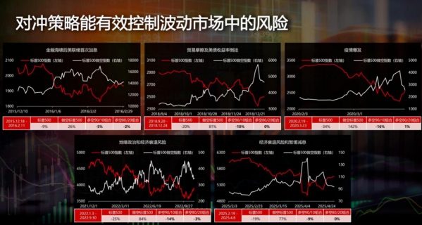 如果投资者想要在风险来临前才开始部署对冲策略,没有风险就不做对冲,那么就相当于您的对冲策略是一天做,一天不做。我们不但不知道风险什么时候来临,更不知道风险持续多久。所以,正确的对冲策略是应该在投资股票的第一天,同步就开始引入对冲策略,并伴随整个股票投资周期,而且空仓必须维持与多头形成合理的比例。现在大部分专业投资者相对认可的多空仓位比例约为9:1,或者8:2。如果以此比例引入对冲策略,在过去十年的五次大型跌浪当中,对冲策略的效果明显优于多头仓位(图七)。