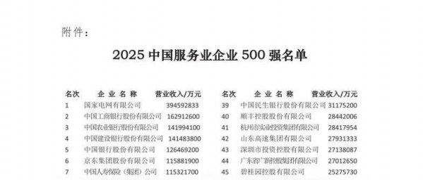 本次入围“2025中国服务业企业500强”的企业需具备五大发展特点:一是营业收入增速显著加快,总体规模迈上了新的台阶;二是利润水平呈现出较快增长态势,经营效益在结构上不断向好;三是新兴服务领域表现尤为亮眼,产业发展呈现出优化升级的良好态势;四是转型升级步伐明显加快,创新发展取得了新的成效;五是国有和民营企业共同发展,各自在功能作用上展现出独特的优势。