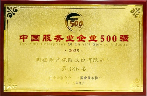 [商家] 国任保险蝉联2025中国服务业企业500强