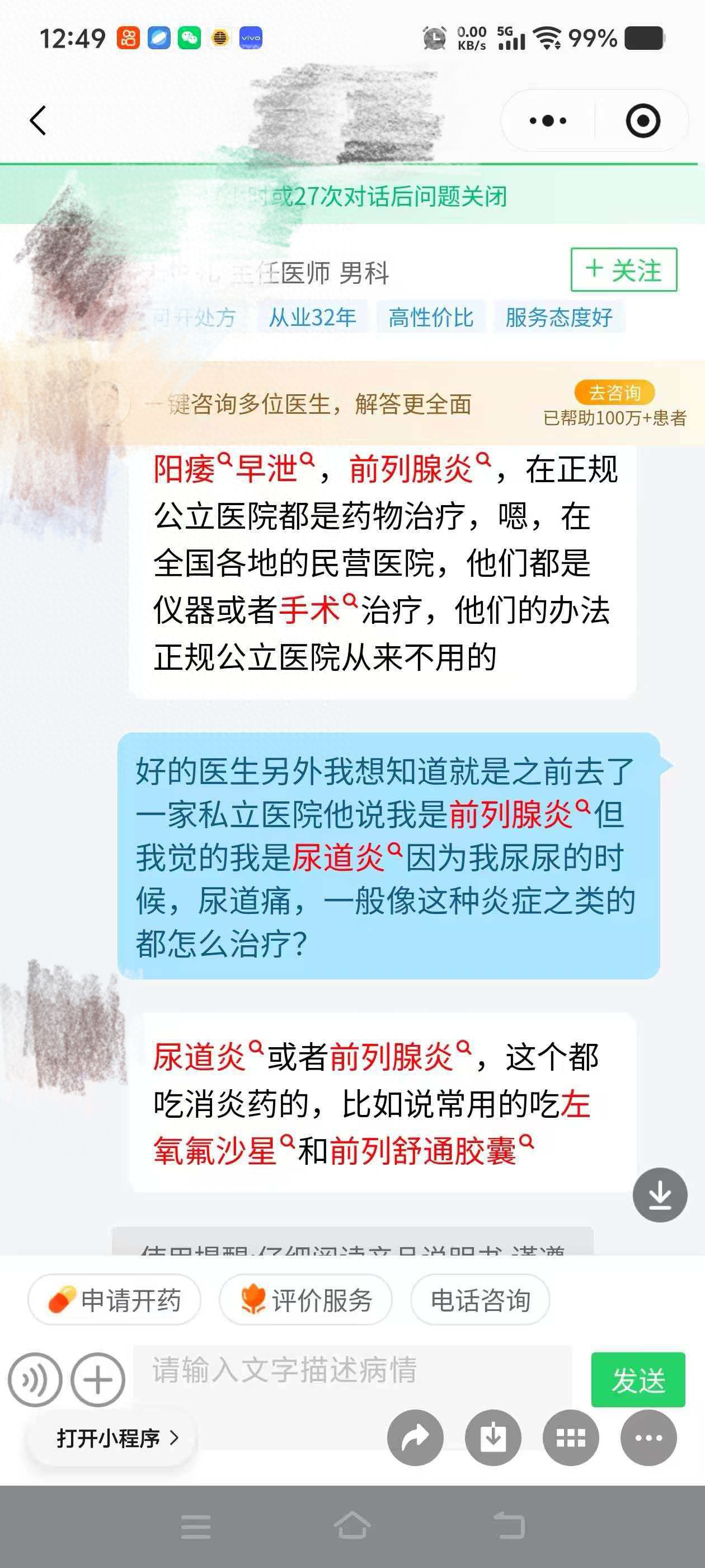 “都是些我看不懂的治疗项目,医生又说我有前列腺炎,每天需要进行热电波、温控、红光等仪器治疗,同时还要输液,每天的治疗费几乎就有一两千元。”孙先生提供的票据显示,从10月18日至24日,7天内他的治疗费累计17703元。“最让人气愤的是,钱花了、罪受了,但情况没有一点改善。大部分钱都花在高价仪器理疗上。”他向华商报大风新闻投诉道。 公立医院问诊:无需手术及仪器治疗 孙先生曾通过网络问诊一家三甲医院,医生简单答复:“阳痿、早泄、前列腺炎,在正规公立医院都是药物治疗。在民营医院大多采用仪器或者手术治疗,这些办法正规公立医院从来不用。”