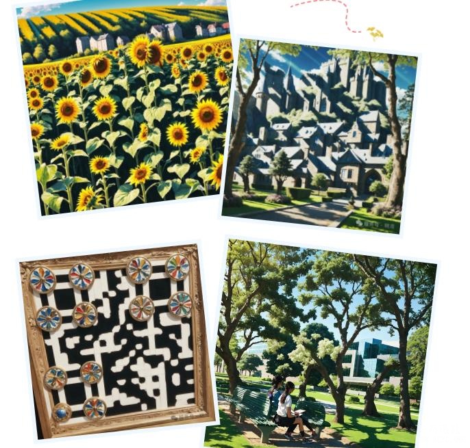 「画里藏话」,同学们还将想说的话藏进了画里。有孩子将“爸爸我爱你”藏进了向日葵图片中,准备打印出来送给自己的爸爸。通过企业微信扫描下方照片,可解锁每个画面里的隐藏信息。