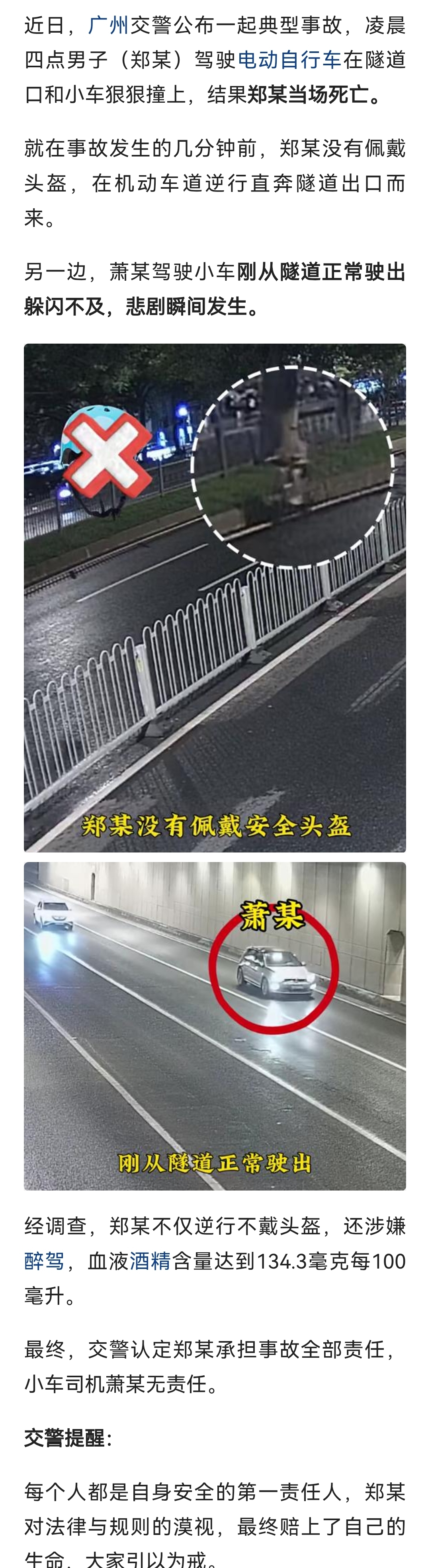 [盐都杂谈] 广州交警公布一起典型事故:电动自行车驾驶人违规被撞致死,其承担事故全部责任