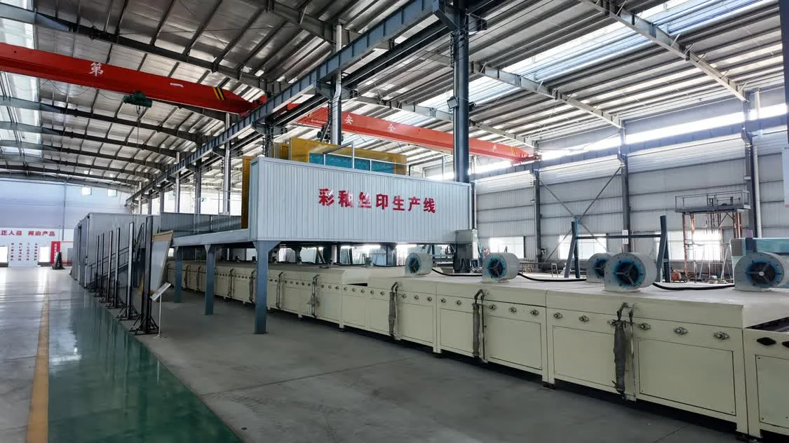 玻璃工厂内的彩釉丝印生产线 图由受访者提供
