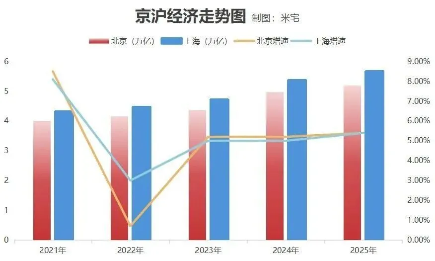 如果按照5%左右的增速,上海破6万亿,只需要2年多。