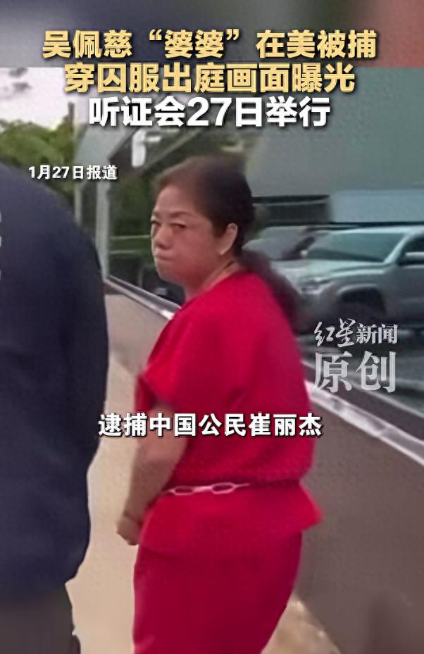 女星吴佩慈“婆婆”崔丽杰,因涉嫌违反美国移民法规则在美被捕后,穿囚服出庭画面曝光。据红星新闻1月27日报道,崔丽杰的律师向法庭提交了173页文件,包括绿卡申请、财务宣誓书等,崔丽杰的保释听证会将于当地时间27日举行。 此前报道 68岁崔丽杰违反移民法在美被捕 今年1月,美国移民与海关执法局逮捕中国公民崔丽杰,据报道,她是西太平洋塞班岛一家豪华赌场的核心操盘者。
