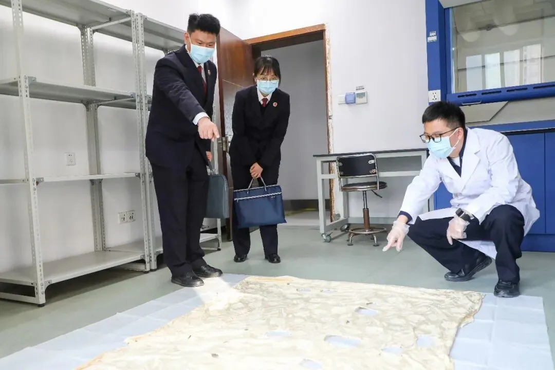 2024年2月,检察官在司法鉴定中心了解关键物证的取样和鉴定过程。