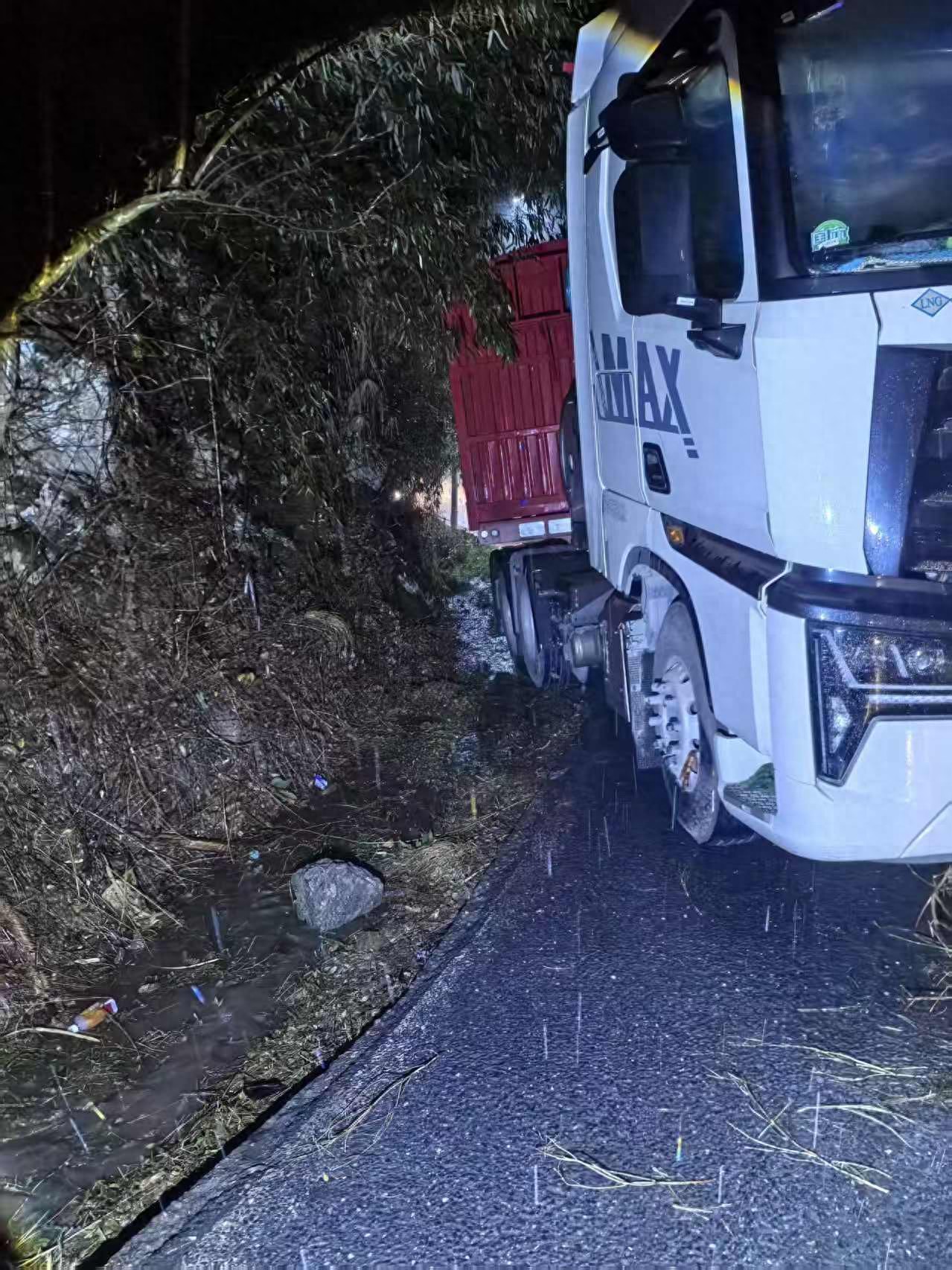 “问世间什么最美丽,是爱情吗?可那夜让我相信,比爱情更宽广、更能创造奇迹的,是陌生人之间不求回报的爱心。”这句显得有点“文绉绉”的话,出自于宁夏一个挂车司机罗进祥。 今年1月16日,雨夜,罗进祥开车进入湖南益阳安化县境内,车子不慎在一个急弯处打滑,无法动弹。他冒雨拦车求救,没想到多个来自异乡的陌生人都来给他“搭把手”,最终他顺利脱困。 事后,平时有点文学爱好的罗进祥写了一封千字感谢信,来感谢几个帮他的陌生人。 “衷心感谢送雨衣的妹妹、帮忙报警的情侣、派出所的民警,以及那位说‘车拉坏了不用你赔’的越野大哥。愿你们一生平安,愿所有在他人困难时愿意‘搭把手’的好心人,都被这世界温柔以待。”罗进祥在信中写道。 “湖南的冬天很冷,但那一天晚上我却感觉到浓浓的暖意。”1月29日,罗进祥向潇湘晨报·晨视频记者讲述了那一个又冷又暖的晚上。  △事故现场 路人送来雨衣转身就跑回车里 48岁的罗进祥是宁夏人,挂车司机,早习惯车上度过了很多日夜。 在他的社交平台上有一段对自己工作的年终总结,他说2025年前三个季度在家躺平,最后一季度直接一路狂奔。数据显示他在78天里跑遍了68个城市,涉及湖南、湖北、广东、广西等,“点亮中国约1553136平方公里。”罗进祥介绍自己做货车司机不到10年时间,2025年前半年动了手术都在养伤,接着便投入到工作中。 1月16日晚,罗进祥和另一名司机驾驶一辆白色半挂车在二广高速出口驶下,沿国道前往湖南安化县高明乡白花村装货。行至高明乡附近时,雨越下越大,23点15分左右,在一处上陡坡的转弯处,驱动轮开始打滑。由于半挂车车身太长,又卡在急弯,车头车尾几乎堵住了整条路。 两人在雨中不停尝试,右侧驱动轮已一半悬空,方向轮卡在排水沟边缘,挂车尾几乎擦到护栏,“再动,车头可能就掉下去了”。罗进祥表示,“身处完全陌生的地方,身边也没有可依靠的朋友时,我们能依靠谁呢?” 罗进祥尝试求援,他走向最前面一辆轿车问:“师傅,能不能帮忙联系附近的铲车?”这时一个女士从雨中快步跑来,把两个没拆封的塑料袋塞进罗进祥手里:“这是两个一次性雨衣。”罗进祥接过,一句“谢谢”还没说出口,她已转身跑回车里。罗进祥说:“雨衣握在手里,冷雨仿佛忽然有了温度。” 罗进祥回忆,人群中,有一对情侣,男生撑着伞,女生依偎在他怀里,接连打了几个电话。她说的方言罗进祥听不太懂,但最后一个电话挂断后,女生用普通话对罗进祥说:“没联系到铲车,但我给派出所打了电话,他们一会儿就来。”罗进祥大声道谢,她摇摇头:“没事儿,出门在外谁还没有个遇到困难的时候。”  民警赶到现场,有人用越野车将空箱挂车拉出 雨未停,车又渐渐堵起来。罗进祥穿着那件雨衣,一次次下车解释。不久,一辆警车驶来,一位民警迎面第一句就问:“你们人没事儿吧?”确认安全后,民警一边查看车况一边问:“现在需要什么帮助?”罗进祥说需要牵引。民警掏出手机打电话,挂断后民警说:“我叫了个人,他过来看看。” 大约十五分钟后,一辆黑色越野车开到车头前。下来一位中等身材、略显壮实的男子,他俯身看了看车,再次确认是空车后,点头说:“能搞。”罗进祥惊讶:“您用这车拉?”他笑道:“没事儿,把我车拉坏了不用你赔。” 牵引开始,罗进祥踩油门时,驱动轮仍在空转,前面小车的屁股左右扭摆,但车,终于一点点动了,经历三次牵引,挂车终于被拉了出来。收起钢丝绳,罗进祥掏手机问:“大哥,我得给您多少钱?”他摆摆手:“是派出所让我来的,免费。”一位民警笑笑说:“出门在外都不容易,能搭把手就搭把手。”  △事故现场 民警、拖车者收到感谢信,“一件微不足道的事” 1月17日,罗进祥早已脱困,但前一天的遭遇让他心情还是不能平静,他决定写一份感谢信,给每一个对他施以援手的人。 这封信一共有1000多字。 “这一夜,我们从被困无助,到被一波又一波的善意稳稳托起。一件雨衣、几个电话、一趟出警、一次牵引,每份帮助都那么及时,那么自然。” “问世间什么最美丽,是爱情吗?可那夜让我相信,比爱情更宽广、更能创造奇迹的,是陌生人之间不求回报的爱心。” “衷心感谢送雨衣的妹妹、帮忙报警的情侣、派出所的民警,以及那位说‘车拉坏了不用你赔’的越野大哥。愿你们一生平安,愿所有在他人困难时愿意‘搭把手’的好心人,都被这世界温柔以待。” 29日,潇湘晨报·晨视频记者联系到湖南安化县高明乡派出所副所长姚洁荣,16日他正在派出所内值守,接到群众的电话:有一辆货车被困在路上,说司机是外地的,于是姚警官迅速出发。 姚警官说“跑长途司机确实不容易,到了湖南山里面,可能他们也想不到有什么办法能够出去,群众第一时间就求助了公安机关,这说明他们对公安机关是比较相信的。”他介绍,那条路段在修路,再加上有大雪天气的影响,车辆容易打滑。“前几天我们也救援了几辆车子。” 罗进祥16日和姚警官加了联系方式,罗进祥一直在表达感谢,姚警官表示这是份内的事,还询问了罗进祥是否平安到达目的地,“他说平安到达,我们派出所的兄弟们都感到很高兴”。姚警官收到感谢信后表示:“祝你以后开车的路途平安顺利,人生的旅途幸福愉快。” 记者又联系到当晚帮助罗进祥拖车的彭先生,他在附近工地工作,彭先生介绍“他们叫我收一点钱,我说没必要