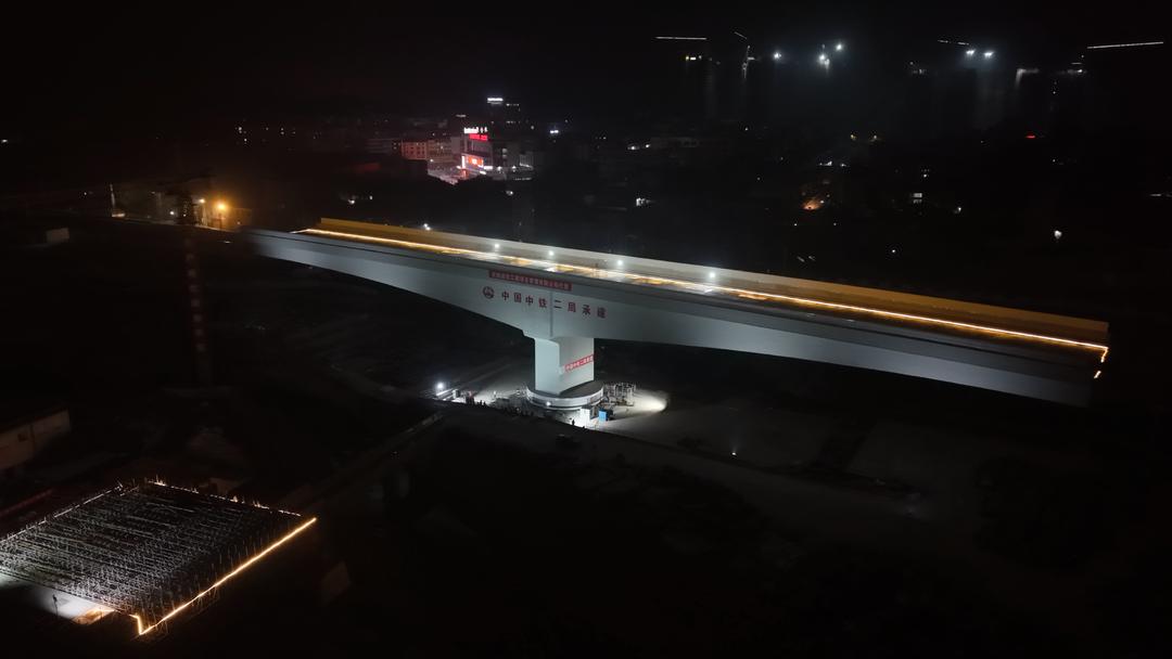封面新闻记者 刘恪生 罗暄 “启动!”1月30日凌晨,随着一声号令,重达2.8万吨的自贡国家骨干冷链物流基地公铁联运基础设施工程跨内昆铁路桥梁,经过约110分钟的毫米级操控,平稳旋转82度,实现“穿针引线”式的高难度对接,这场展现我国基建尖端实力的“空中芭蕾”顺利落幕。 这场“空中芭蕾”一举创下两项重量级纪录:它是目前“一带一路”中欧班列线路上跨站台吨位最大的T构转体桥,同时也是西南地区吨位最大的T构转体桥,其技术难度与精准度位居全国同类工程前列。  作业现场 如何转体?借助“转动球铰”实现毫米级对接 要让如此庞然大物实现“轻盈转身”,且不能影响下方铁路正常运营,堪称桥梁工程领域的“珠峰”级难题。其背后,是一系列硬核科技的强力支撑。 据了解,此次转体的桥梁部分全长186米,总重量高达2.8万吨。施工区域邻近铁路营业线,下方货场轨道密集、铁路行车繁忙,对施工安全与精度提出了极限挑战。  作业现场 项目承建方中铁二局团队采用国际领先的“平衡重转体施工”技术,在桥墩底部安装了一个直径达5.49米、承载力超万吨的“转动球铰”,作为桥梁旋转的“轴心”。通过电脑控制的连续牵引系统,以毫米级的精度驱动这个“巨无霸”,沿顺时针方向缓缓转动82度,最终对接误差被严格控制在9.3毫米以内,展现了中国桥梁建造的巅峰工艺。 为了实现顺利转体,项目方联合科研单位,运用BIM(建筑信息模型)技术进行了全过程数字化模拟,预演了整个施工环节和潜在风险。转体过程中,桥身布设近百个高灵敏度传感器,对桥梁姿态、应力变化、转速等进行实时监控与动态调整,所有数据同步传输至指挥中心,确保每一步都“了如指掌”。  智能化监视系统 主干贯通 区域物流成本平均下降12% “随着桥梁转体完成,后续的梁体连接、桥面铺装等工序将全面展开。”项目承建方相关负责人介绍,预计今年二季度全线贯通后,将为企业缩短运输距离约4公里,提升丹阳大道通行效率50%以上,显著增强国家骨干冷链物流基地的集疏运功能,推动自贡高效融入成渝地区双城经济圈建设及西部陆海新通道。  启动仪式 届时,西南(自贡)国际陆港主干路网动脉将彻底贯通。对于陆港内聚集的157家工业企业和312家商贸物流企业而言,这意味着产品出港速度更快、成本更低。大桥通车后,将直接打通这“最后一公里”,货运绕行将成为过去。 这次漂亮的“空中芭蕾”,正以其“优雅转身”,生动诠释着中国基建的硬核实力与智慧,为全国同类复杂环境下的桥梁建设提供了宝贵经验。 随着主干路网动脉的贯通,西南(自贡)国际陆港“市域半小时、川南1小时、成渝2小时”的交通圈基本形成。依托“一航、两港、四铁、九高、多快”的立体交通体系,区域物流成本平均下降12%,为产业发展提供了坚实基础。