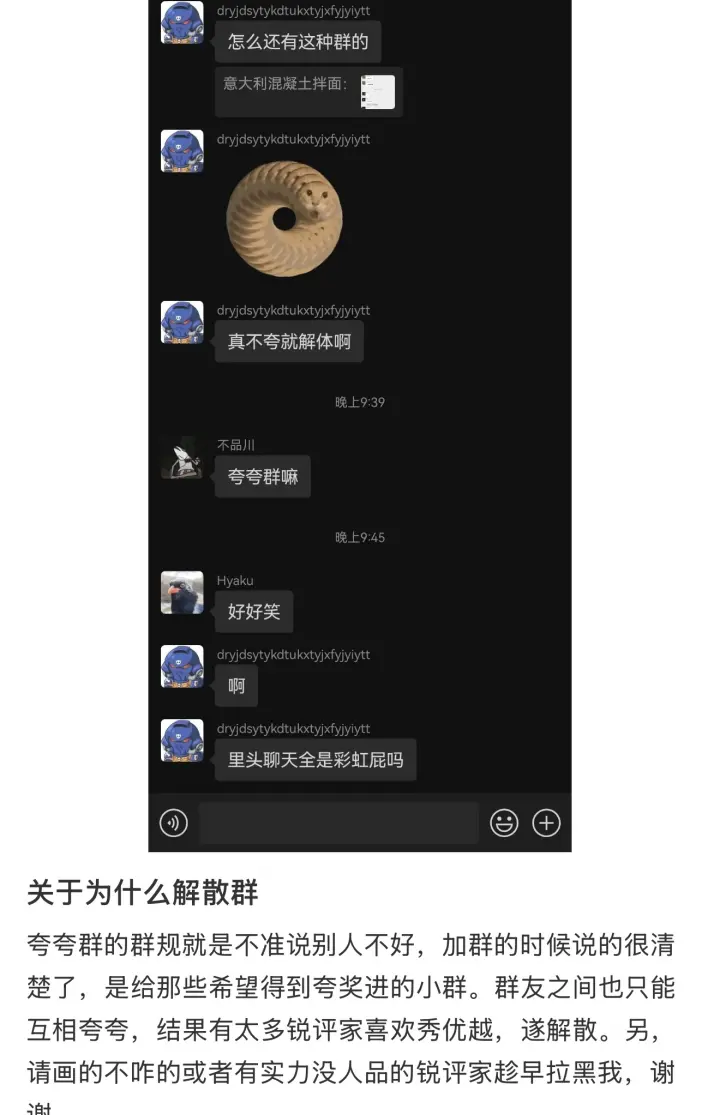 可是,没有谁能一直正能量,夸夸群也逐渐倒在了那些“秀优越的锐评家”群友手里。