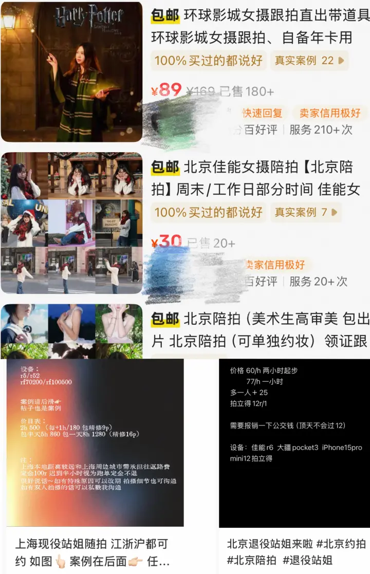 关键是,这些陪拍不仅会自带ccd等相机设备,还会带道具、能提供美术生高审美的约妆服务。