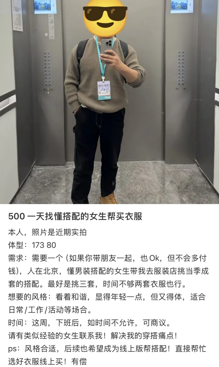 除了女性,不少有搭配需求、想解决穿搭痛点的男性,也存在类似的需求。