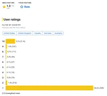 2月2日,互联网电影数据库IMDB平台上,该片得分1.3,有9.1%的人打了10分,86.6%的人打了1分。