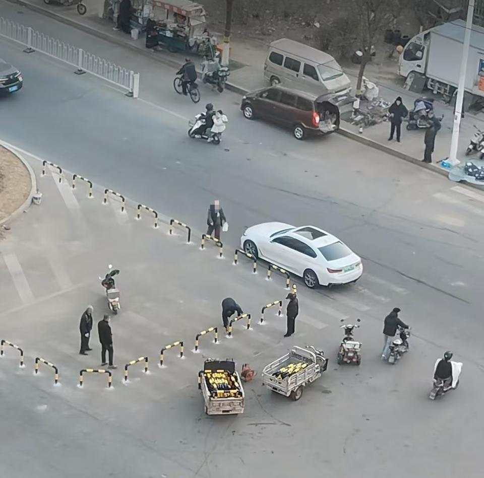 自2月3日起,社交媒体发布关于天津武清区蒲瑞祥园社区一十字路口路面安装隔离桩的视频引发关注。