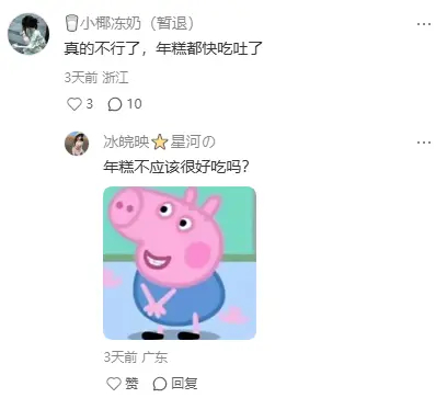隔壁江苏朋友则被包子拿捏,过年前全家齐上阵包上百个,猪肉、萝卜、青菜馅轮换,江苏宝子苦笑:“看见包子就绕路,却懂这是家人怕我饿肚子的心意。”