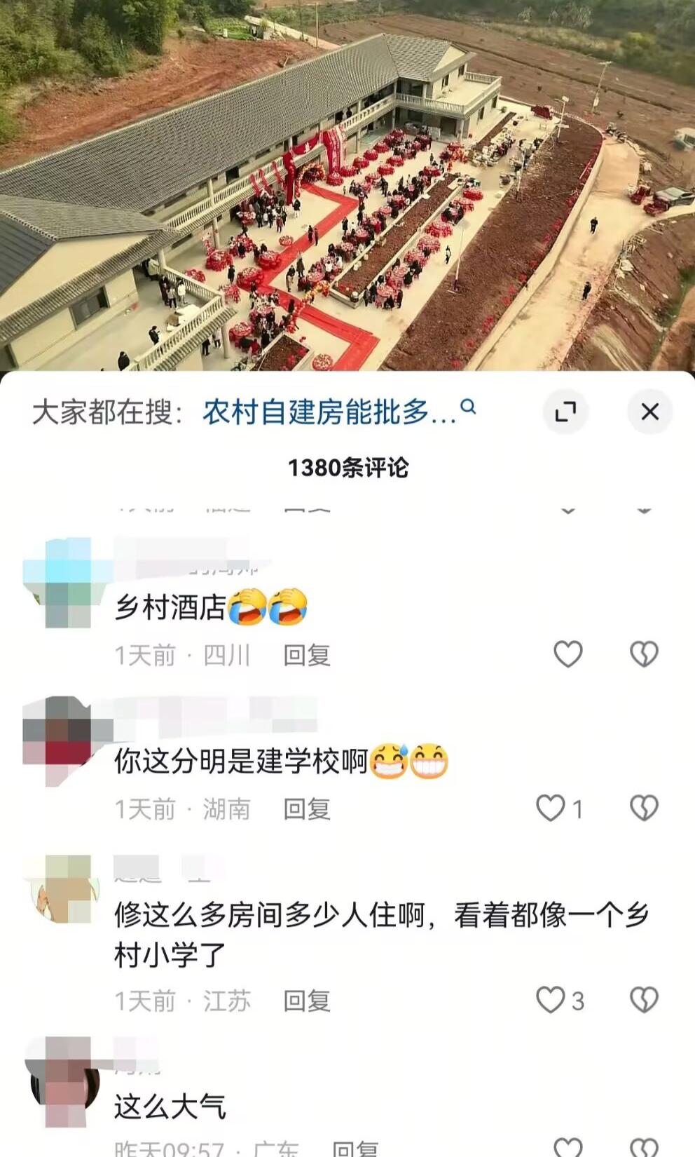 极目新闻记者 刘琴 近日,一位重庆网友发布的一段视频显示,一套两层高的农村自建房已建成,该栋房子目测有数十米长,引发不少网友的关注。2月12日,该套农村自建房所在的重庆市大足区回龙镇政府相关工作人员告诉极目新闻记者,这套农村自建房是六家人在原来的宅基地上一起重新合建的,有合规手续,不过目前还未验收。  网友发布的视频截图 “老家盖新房了,初三办酒,欢迎大家来搂席。”网友发布视频时配文写道。视频中是一套目测有数十米长的两层楼房,一层楼房的窗户就有十多个。该视频一度引发网友关注,有网友评论称“这哪里是建的房,这是建了所学校”,还有网友询问是不是乡村学校改建的,也有网友质疑如此大的农村自建房是不是违建。  视频评论截图 极目新闻记者尝试联系发布视频的网友,未获回复,上述视频也已被删除。记者注意到,视频发布者曾回复网友这一栋自建房位于重庆市大足区回龙镇幸福村,“我们家几大家子人住的”。 前不久刚到这处农村自建房吃喜宴的张先生(化姓)告诉极目新闻记者,这套房子是六家人一起建的,屋主中有的是亲兄弟,有的是堂兄弟,“2月5日朋友结婚在那里办的喜酒,当时房子的装修都还没有完工”。 2月12日,幸福村一位村干部告诉极目新闻记者,该栋自建房于2025年下半年开建,是几户村民将老屋推翻后重新修建的,屋主中有亲兄弟,也有堂兄弟,房屋面积在老宅面积基础上,根据新增的户籍人口有增加,“手续都是齐全的,已经上交好几个月了。” 回龙镇政府相关工作人员表示,因六家人的老房年久失修,这栋新建成的两层楼房是他们将老屋推倒后重新合建的,面积在原有基础上有所增加,“新增面积他们是按照政策来申报的,手续都是合规的。”该工作人员介绍,由于还没有去现场验收,建房的实际面积具体是多少他暂不清楚。 (来源:极目新闻)