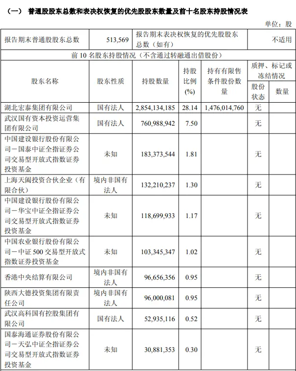 股权方面,天风证券2025年三季报显示,截至报告期末,公司持股比例在5%以上的股东共有2家,分别为湖北宏泰集团有限公司、武汉国有资本投资运营集团有限公司,持股比例分别为28.14%、7.50%。