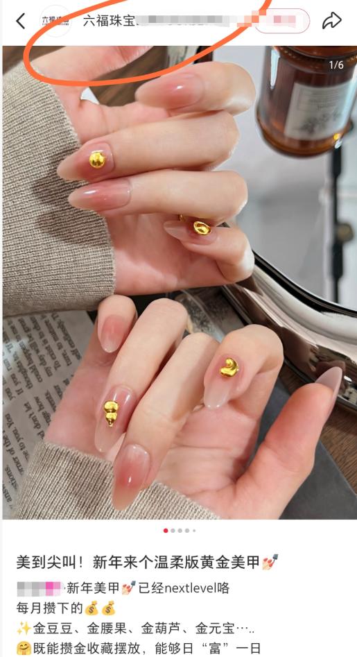 图据社交媒体 六福珠宝、周六福等品牌店铺的店员,也将金饰用于美甲“宣传”,在社交媒体进行营销。