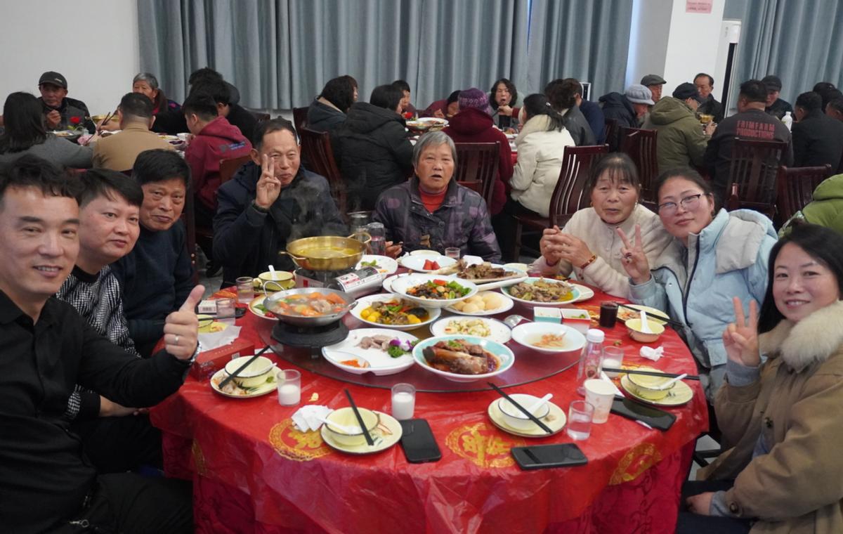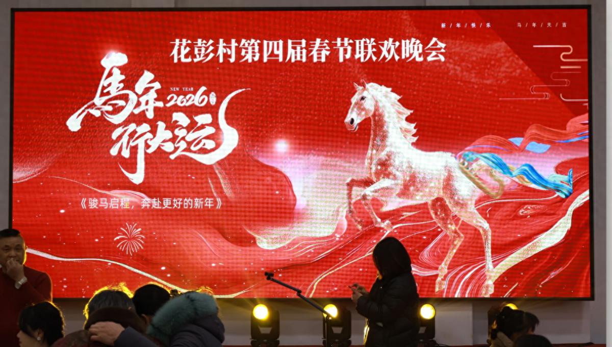 马年除夕夜,室外寒风轻拂,而在享有扬州“最东方”美誉的扬州市江都区小纪镇花彭村“家宴中心”内,却是一片炽热欢腾。2月16日晚,该村第四届“村晚”在此精彩上演。村里60余户人家打破“各家各户自家吃”的传统,400多位村民扶老携幼,围坐在热气腾腾的年夜饭桌旁,共同欣赏由街坊邻居担纲主演的“乡村春晚”。